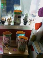 När jag plockade ut potatisen ur kylskåpet för några veckor sedan hade de börjat att gro. Min pedagogiska ådra vaknade till liv och jag berättade för ungarna att om man stoppar ner potatisarna i jorden så växer det ut nya. Ja ni vet säkert hur det funkar.Potatisarna lades på diskbänken i väntan på tomma mjölkkartonger att sätta dem i.