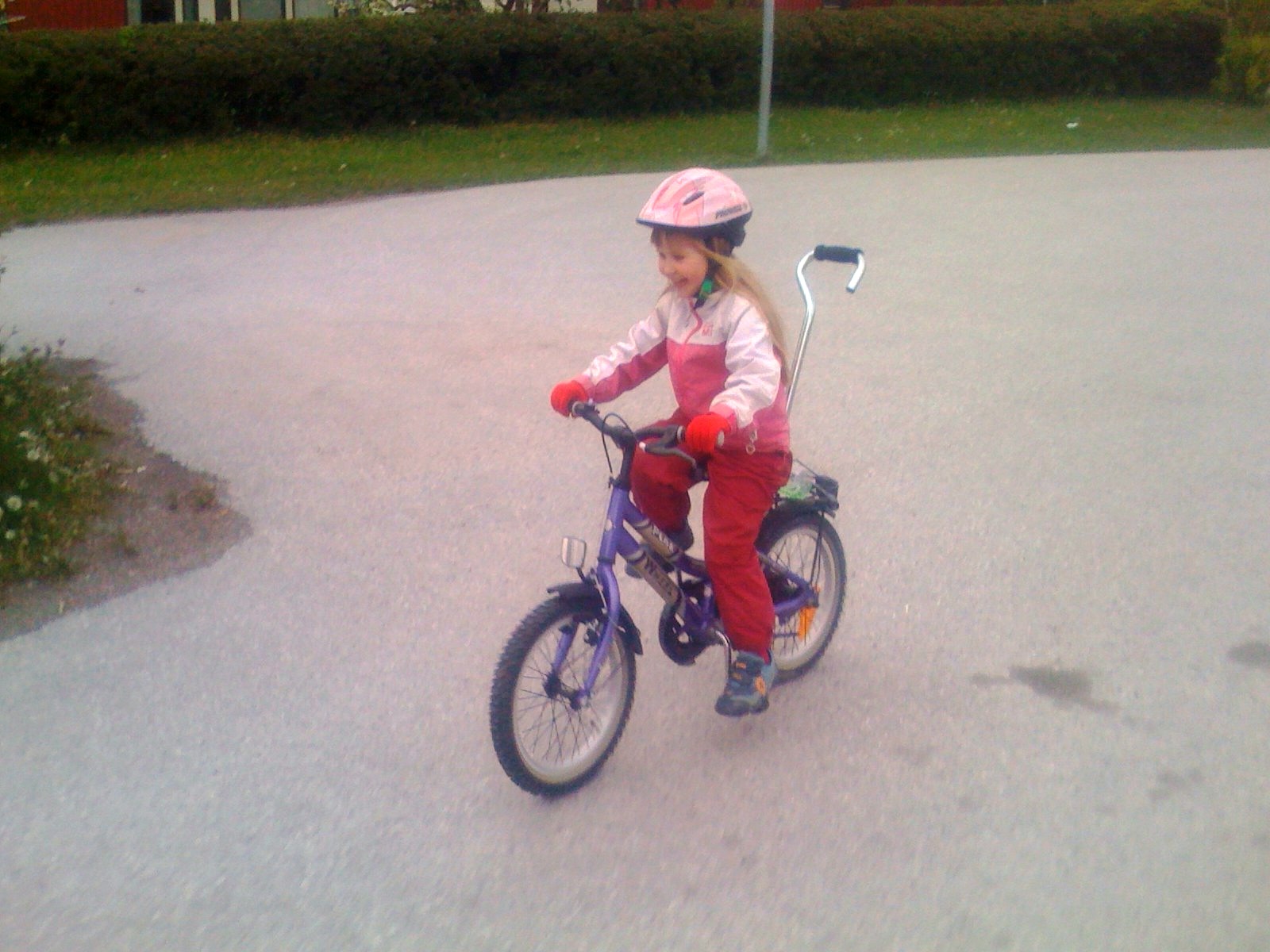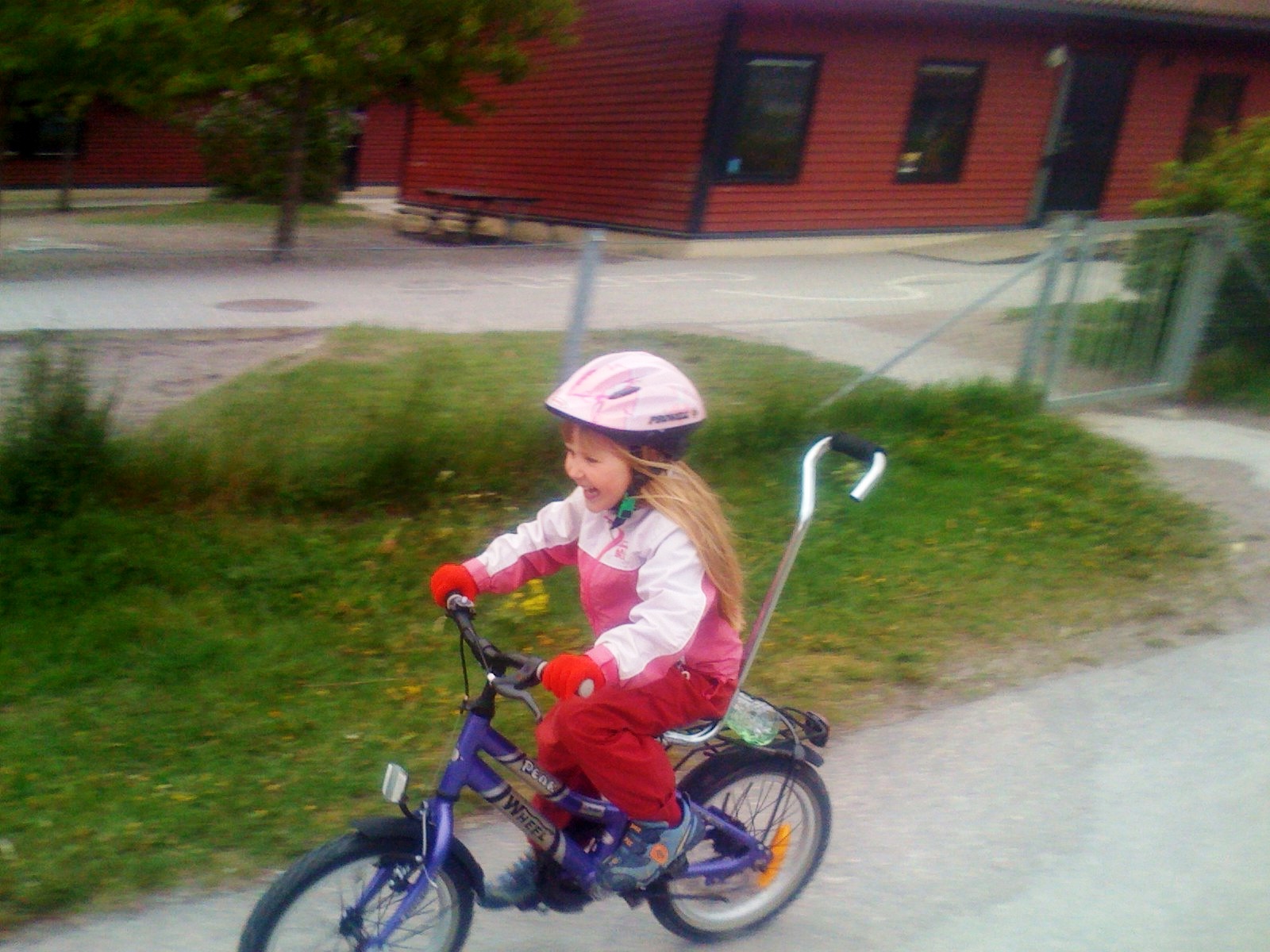 Sen blev det vinter och senare vår. Den lila cykeln utan stödhjul åkte fram igen och jag spran bakom och hejade på. Samma sak som tidigare, när koncentrationen var hög funkade det bra och när hon fick ögonen på någonting annat bar det oftast iväg in i någon buske eller så.