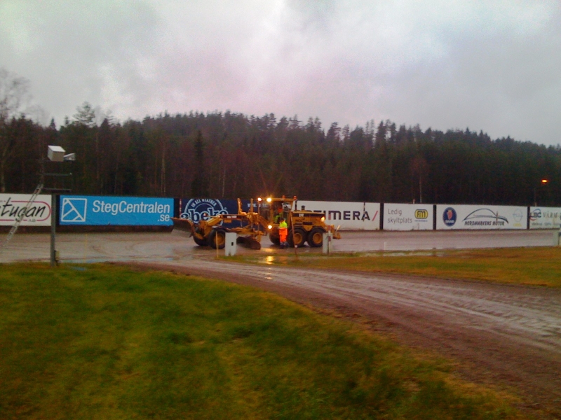 Helvete vad det regnade idag när jag var på Årjängs travbana och satte igång ett automatiskt hyvelsystem tillsammans med min kollega J-O.