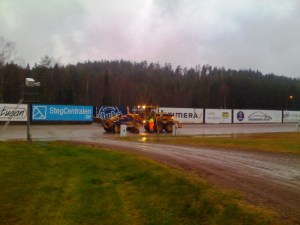 P.g.a regnet gick det inte att hyvla banan till den tänkta profil som har räknats fram. Av allt som hyvlades loss bildades blixtsnabbt en lervälling som inte gick att hantera.