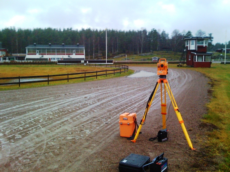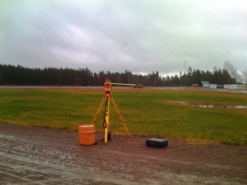 Regnkappan gjorde bara att byxorna blev dyngsura och blytunga efter bara en liten stund. Etableringen krånglade dessutom lite i början för att sedan fungera bra fram till lunch. Då bestämde sig instrumentet för att börja krångla igen. Jag gick fram till det (instrumentet alltså) och sa till på skarpen: nu funkar Du din jävla teodolit, annars skruvar jag isär dig i småbitar och lägger dig i en påse när vi kommer hem till kontoret igen. Sen gick jag på lunch. Och se, det tog skruv! För medans vi satt och åt lunch fick hyvelföraren kontakt med instrumentet igen och kunde slutföra dagens arbete.