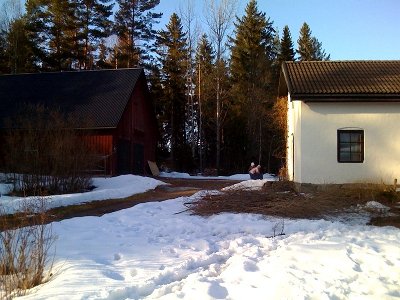 Marken runt huset har börjat att växa igen med sly och den fina tallskogen runtom har också börjat att bli för tät. Skog och stora tomter är alltid evighetsprojekt, det är bara att bestämma sig för i vilken ände man ska börja i. Ett litet problem som jag måste ta tag i är att få ordning på vattenavrinningen över infartsvägen. Det stod decimeterdjupt med vatten där i höstas och börjar se likadant ut nu när snön börjar smälta. Grävmaskin och en jäkla massa grus tror jag den lösningen stavas.