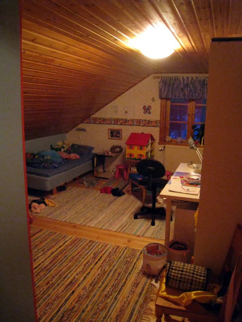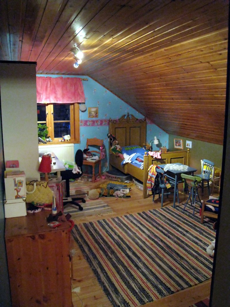 Trots att huset är riktigt stort så har vi inget gästrum. Det är iof. gott om plats i vardagsrummet och bara att slänga ut ett par madrasser. Men det känns lite futtigt när vi har 260 kvm boyta och lika mycket biyta i form av andra byggnader på gården. Därför planerar jag att inreda övervåningen av garaget och ordna gästrum där. Den ursprungliga idén med de 70 kvm är att göra iordning en tvårumslägenhet som våra döttrar kan ha när de blir äldre. Jag ska bestämma hur lägenheten ska se ut så blir steg ett att iordningställa ett av rummen till gästrum. Barnen är ju bara 5 & 8 år gamla så jag har gott om tid på mig innan det är dax för dem att flytta ut.