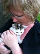 Anna Karin är den som just nu har bäst hand med den lilla gosekatten. När jag eller barnen kommer nära kryper den gärna ner under uthuset igen.