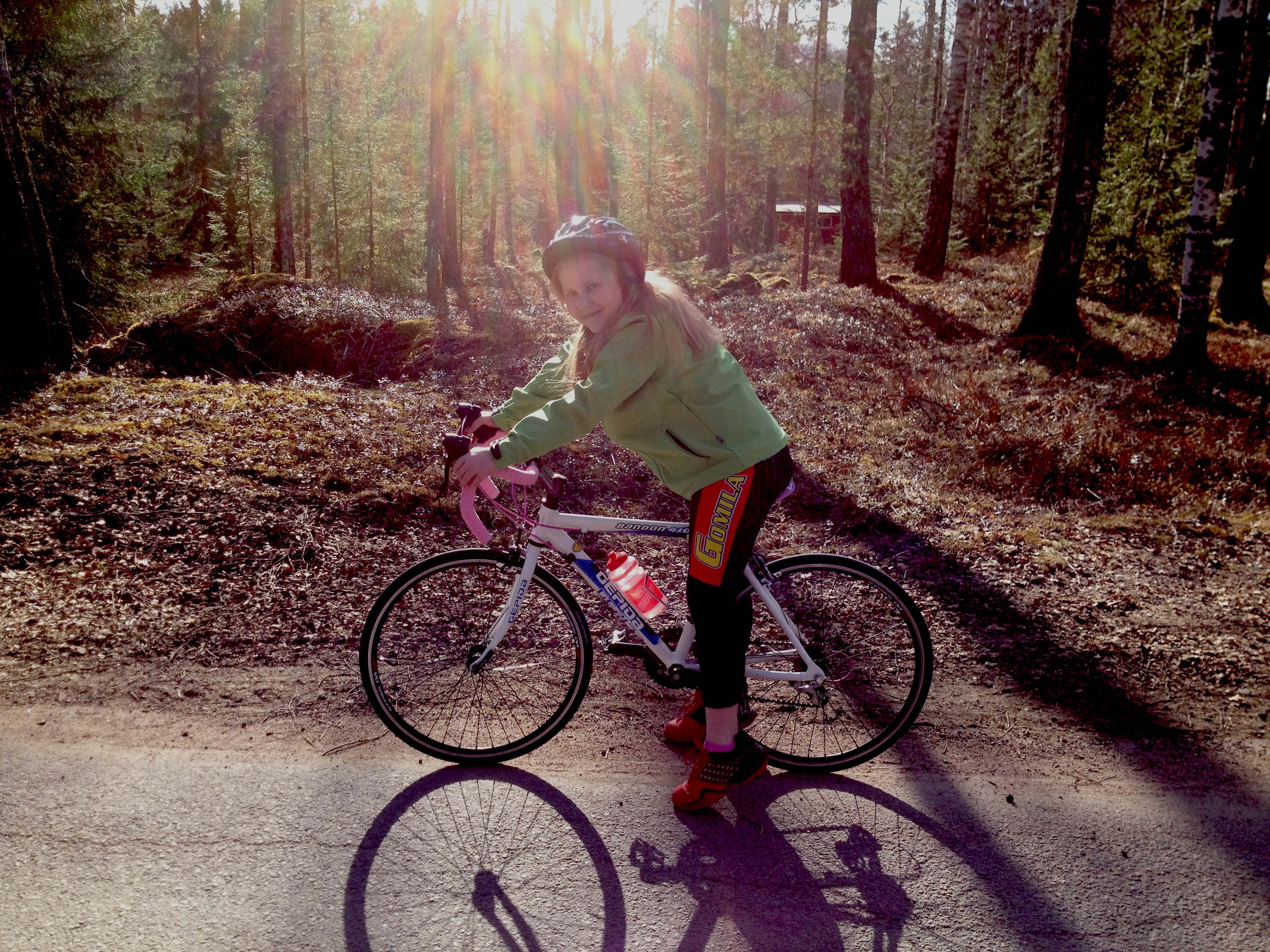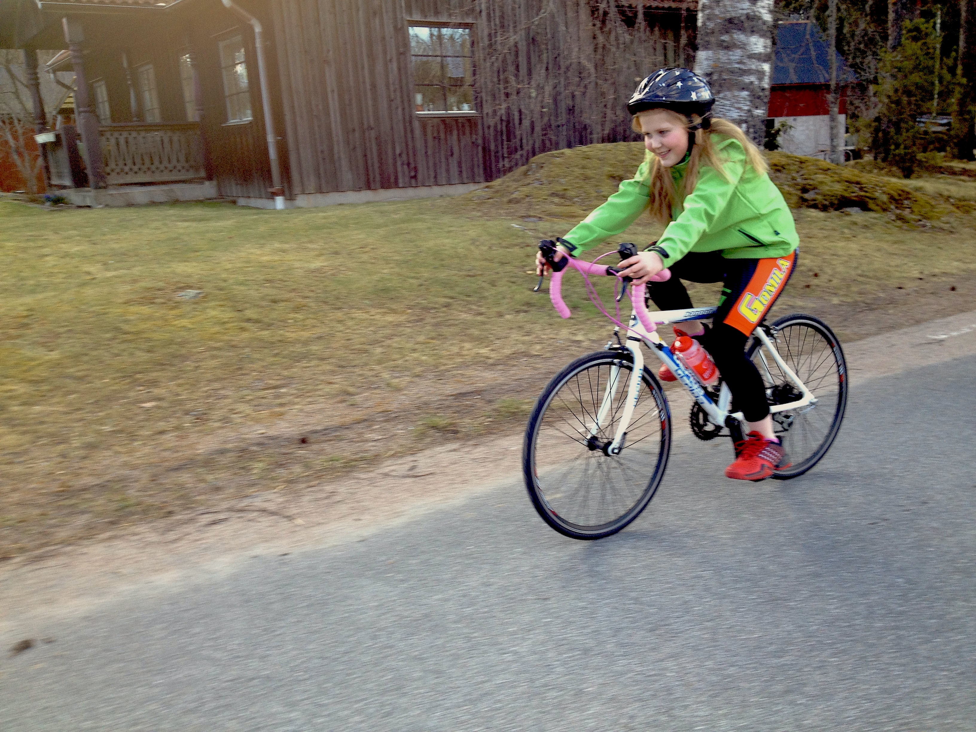 Ida och Johanna har visat intresse för att cykla både i skogen och på landsväg och som den idrottsfarsa jag är försöker jag att se till att de har bra grejor att åka på, springa med, eller glida på beroende vilken idrott de vill pyssla med. Har man bra grejor blir det roligare att hålla på och det ger förutsättningar för att utvecklas. Glädjen att hålla på är viktigast, men man ska inte bli efter pga. materialet ens när man är barn, så resonerar jag.